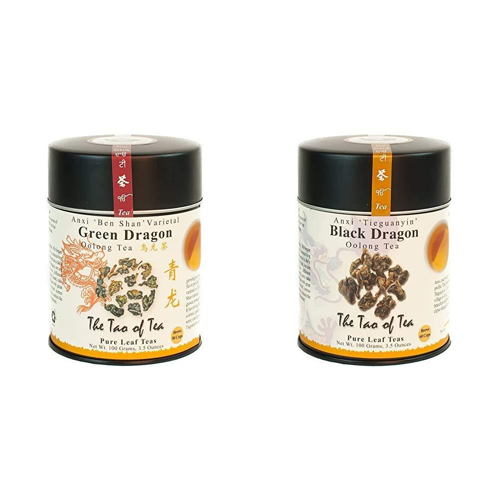 - Includes one 3.5 oz tin of Green Dragon Oolong Tea and one 3.5 oz tin of Black Dragon Oolong Tea, both loose leaf.
