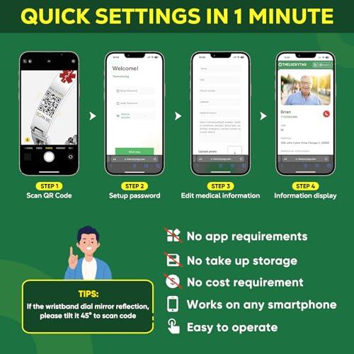 - EASY SETUPSetting up your personalized medical bracelet is a breeze. Simply scan the QR code, set a password, and start editing your personal information. Enter your phone number and email, click "Activate," and start opening health records for your family. No app required!