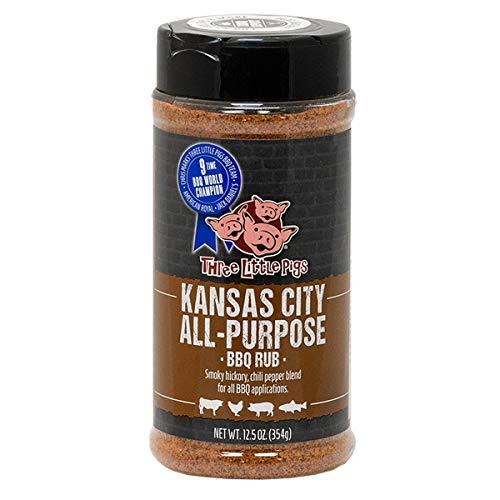 Three Little Pigs Kansas City All Purpose Rub 12.5 Oz Bottle Award Winning Insist on the all-purpose BBQ seasoning used by champions! In addition to more than 40 national awards, the Three Little Pigs BBQ team has used their seasonings to win: 8 American Royal Grand Championships (touted as the largest BBQ cookoff in the world), and the prestigious Jack Daniels World Championship. Their outstanding blend of spices will satisfy even the most discriminating BBQ connoisseur! Get some today, and create your own masterpieces in the kitchen and on the grill! Features Generous 12.5 oz bottle of incredible savory rub and seasoning blend Rub this flavorful spice blend on your briskets and pork butts Award-winning seasoning is perfect for all cuts of beef, pork, poultry...anything Works wonders in soups and casseroles, too Perfect for all proteins in the kitchen or on the grill