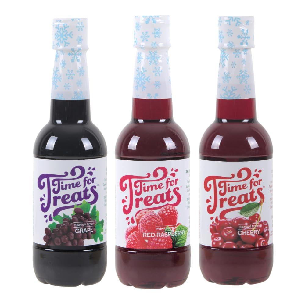 - VARIETY OF FLAVORS: 3 delicious syrups included: Grape, Cherry, Red Raspberry! Made in the USA with high quality ingredients.