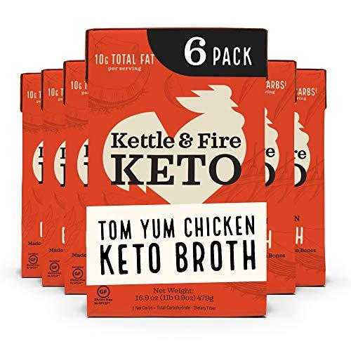- KETO BONE BROTH: If you love our bone broths and soups, you'll love our new Kettle and Fire Tom Yum Chicken Keto Bone Broth. Each 16oz carton provides about 2 servings, each serving holding about 6 grams of protein!