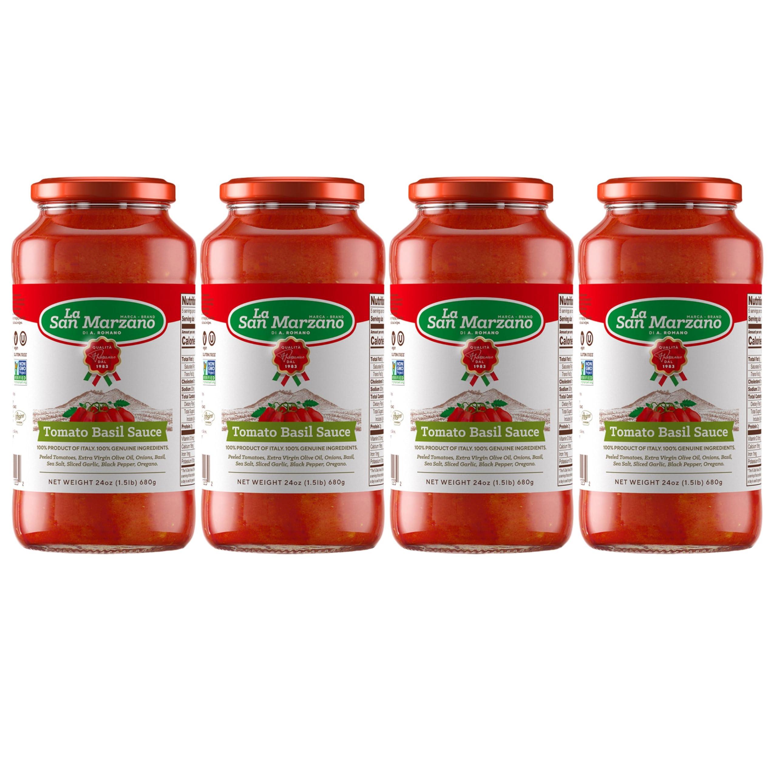 LA SAN MARZANO DI A. ROMANO MARCA BRANDROMANO La San Marzano - Tomato Basil Sauce - Pasta Sauce with 100% Italian Tomatoes Made in Italy - Peeled Tomatoes with Fresh and Natural Ingredients Non GMO Tomatoes, Vegan, Gluten Free, Kosher, Mediterranean Diet 24 Ounce Jar