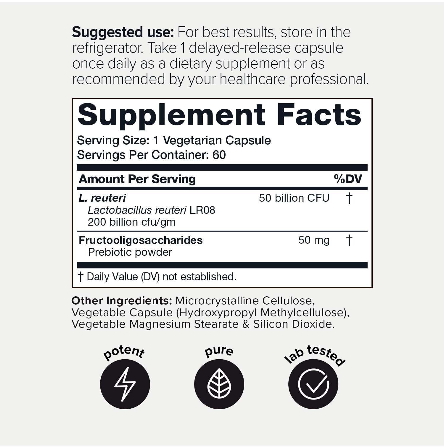 - Third-Party tested L Reuteri - Lactobacillus Reuteri Probiotic is currently one of the most well researched probiotic genera, lauded for their ability to support a healthy digestive system.