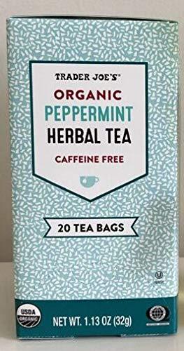 Trader Joes Organic Peppermint Tea Organic -- Herbal Caffeine Free --20 Tea Bags Each Box (2 Pack) Organic Herbal Tea made with organically grown peppermint Naturally caffeine-free Steep it to perfection if your kettle or a cup Ideal after-dinner beverage also a refreshing option served over ice.