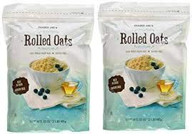 Organic Whole Grain Oats, good source of iron, fiber and 5 grams of protein per serving. Simple oats. Enjoyed for more than two thousand years, oats continue to be popular as both an ingredient in recipes, and on their own as nourishing hot cereal. Trader Joe's Old Fashioned Organic Oats are oven-toasted, whole grain rolled oats that make delicious, nutritious oatmeal, and are easy to use in recipes - from cookies to meatloaf! Making breakfast? On the stovetop, these oats cook up into fantastic oatmeal in about five minutes and in the microwave they'll cook even faster. You can enjoy them without any enhancements or try one of oh-so-many possible additions - raisins, dried cranberries, nuts, maple syrup, agave syrup, brown sugar, cinnamon...