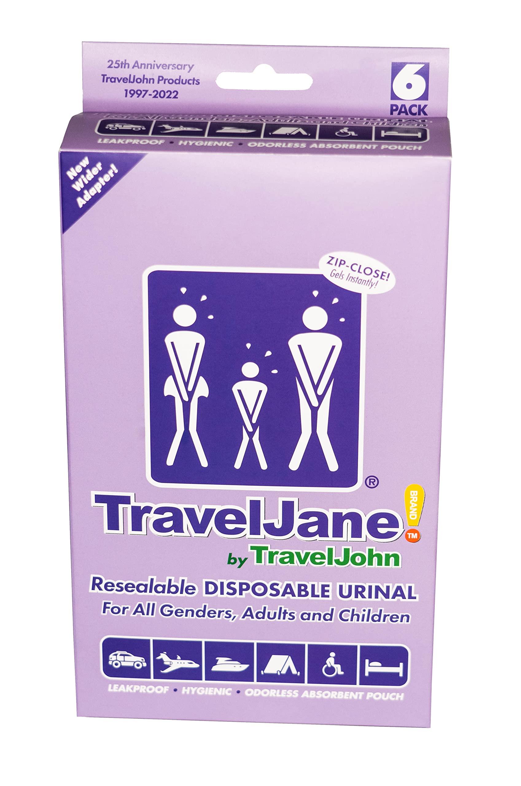TravelJane Resealable Disposable Urinal for All Genders, Adults, and Children (6 Pack) Designed for Emergencies, Travel, Camping, Long Car Rides and More - 28oz/800ml Capacity (TJ1T-C)