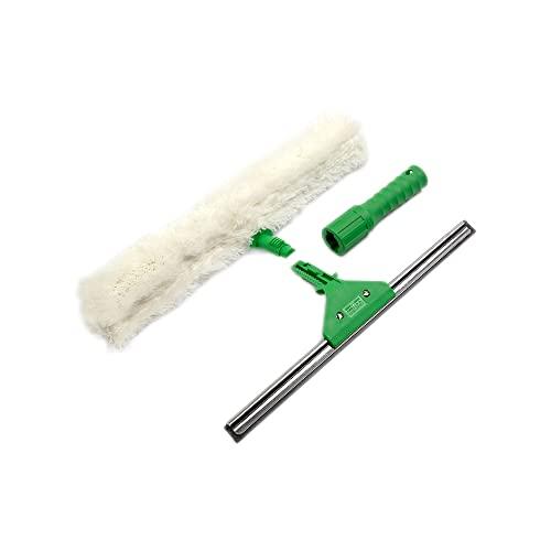 Unique, all-in-one, window cleaning tool offers an original strip washer on one side and the Unger's S-Channel and rubber squeegee on the other. Combining two tools in one allows faster cleaning. Design features a stainless steel squeegee channel with rubber flips to washer. VisaVersa comes pre-assembled, and the channel and blade are easy to change with quick-release spring. Use by hand or attach to telescopic pole for extended reach. Scrub and squeegee dry in one motion. The squeegee and washer combo locks onto the ErgoTec Locking Cone (sold separately) so it will not fall off this pole.