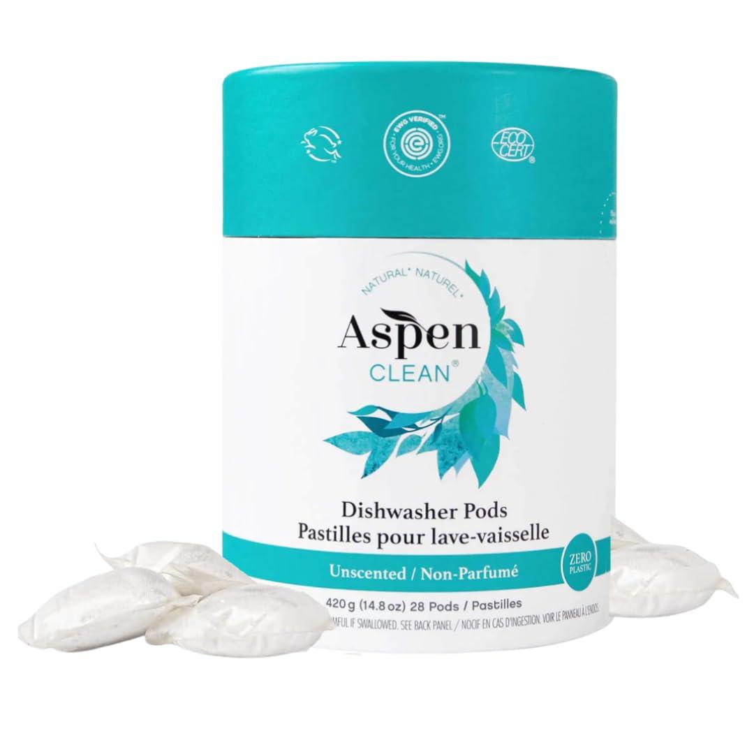 AspenClean Unscented Dishwasher Pods by AspenClean, Dye-Free, Zero Plastic, EWG Verified, Vegan, Eco-Friendly, Natural Dishwasher Detergent - 28 Count