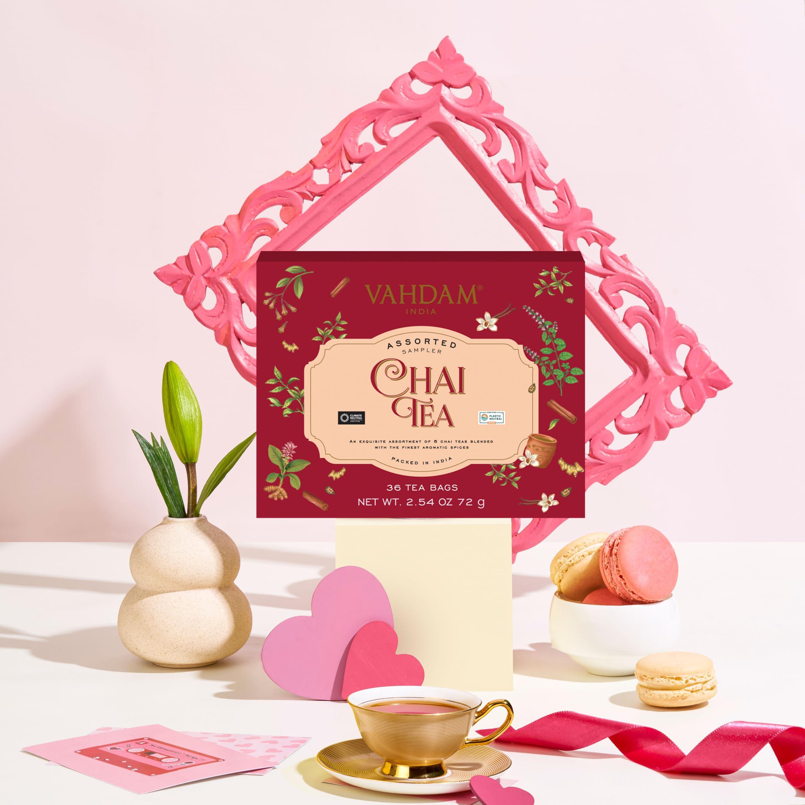 - ASSORTED CHAI TEA GIFT SET - Step into a world of tea enchantment with our exclusive & premium Chai Tea Sampler Gift Set. Savor a symphony of flavors with our diverse tea collection featuring classics like Original Masala Chai Tea, Sweet Cinnamon Masala Chai Tea, & Earl Grey Masala Chai Tea, alongside the golden warmth of Turmeric Spiced Herbal Tea, the luxurious indulgence of Vanilla Spiced Chai Tea, & the invigorating blend of Turmeric Ginger Herbal Tea.