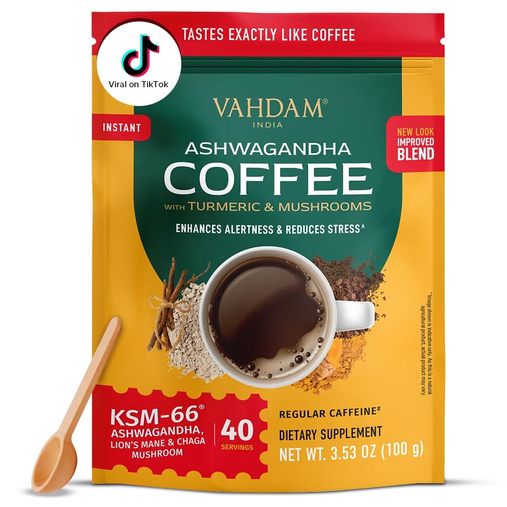 - VAHDAM INDIA Ashwagandha Coffee is a wellness-focused coffee blend that delivers energy, focus, and stress reliefwithout the usual coffee jitters.