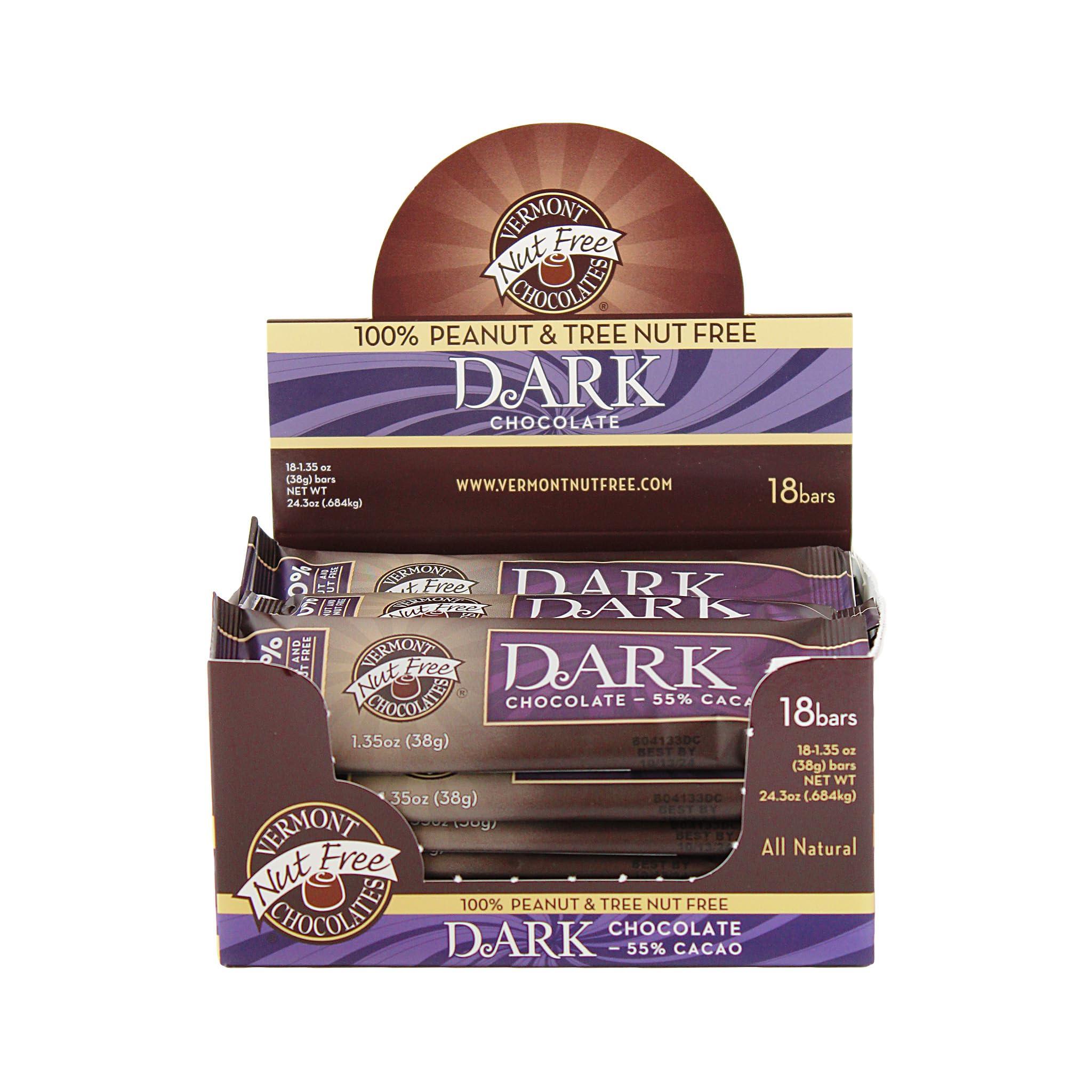- Includes 18 nut free Dark Chocolate (55% Cacao) Small Bars per box - 24.3 ounces per box, 1.35 ounces per bar