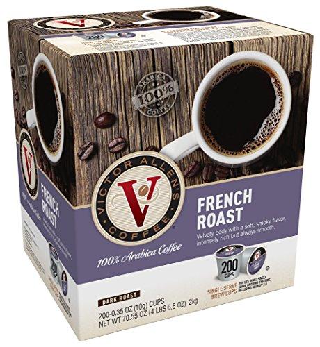 - Contains 1 box of 200 pods of Victor Allen's French Roast Single Serve Coffee Pods (200 pods total)