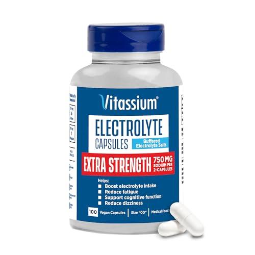 - EASY BOOST OF ELECTROLYTES: Vitassium Capsules are lightweight and come in a portable flip-top bottle; making them a great alternative to electrolyte powders because there is no mixing required and no mess to clean. Our unflavored electrolyte pills are small (size 00) and easy on the stomach.