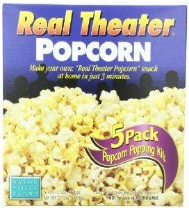 - 1. PERFECT POPCORN IN 3 MINUTES: The Wabash Valley Farms Real Theater Popcorn Popping Kit includes everything you need for a quick, tasty treat of theater-style popcorn from the comfort of your home, in just 3 minutes! 2. POPPING KIT INCLUDES: The Real Theater Popping Kit includes everything needed for flawless popcorn: gourmet popping corn, our secret buttery salt and our special popping oil. Purchase includes a pack of 5 kits. 3. EASY TO USE: Having yummy movie-theater popcorn with less salt and oil for your next movie night is easier than ever; just open the kit, pour and pop for a delicious, perfectly popped treat in minutes. 4. KEEP HANDY FOR MOVIE NIGHT: With everything needed to create delicious, movie-theater style popcorn with less salt and oil handy in one kit, it's a no brainer to keep your pantry stocked with these kits for family movie night or when a popcorn craving hit 5. STOVE-TOP POPCORN POPPING: This Real Theater popcorn popping kit is made for stove-top popping in the Whirley-Pop popcorn popper or your pan - not for microwave use.