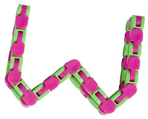 Wacky Tracks keep idle hands busy and stimulate hours of imaginative play. This articulated chain can bend into a countless shapes. Create letters, numbers, symbols - even a bracelet or necklace. Lightweight plastic construction is designed to withstand hours of intense play. Suitable for all ages.Improve eye and hand coordination skills, problem solving skills and expand the mind while sharpening your powers of deduction. Create any shapes you want: you can fold the snake cube puzzle into letters, numbers, symbols, even a bracelet or necklace, or any shape you can imagine.Small and easy to keep in pockets and other places. Bright enough not to lose in dark spots and the bottom of your bag. Pieces stay clicked together well, so no much concern about small pieces for little ones. The snap and click wacky track is about 11 inches/ 28 cm in length after spreading, suitable size for children and adults, good as gifts to your friends and kids. Wacky Tracks come in a variety of assorted colors. Order is for ONE Wacky Track Green/Purple