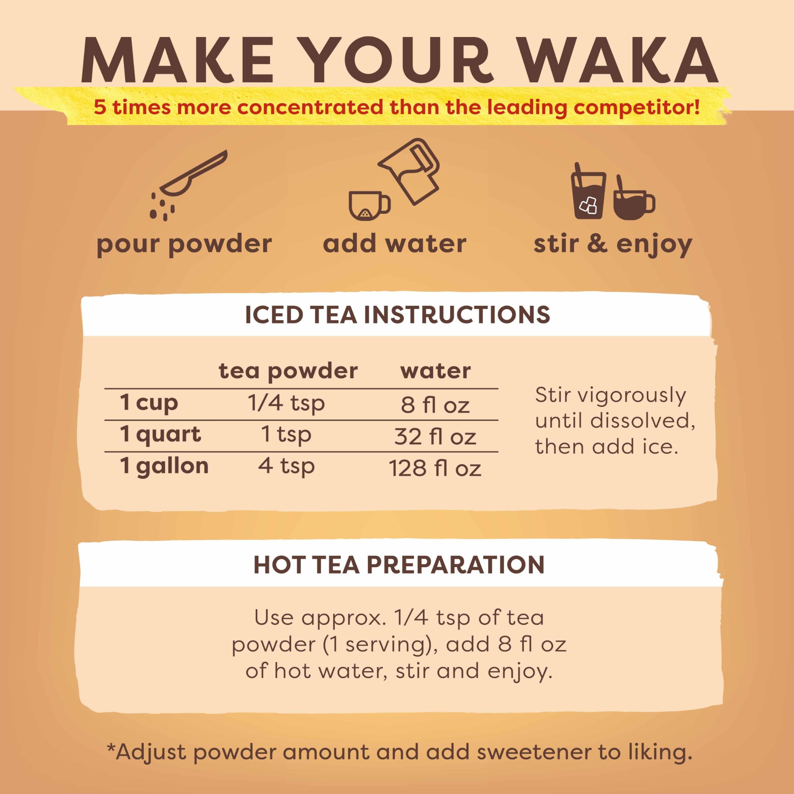 • Multi-Use Powder: At Waka, we know instant beverages the best, because it is all we do. Be your own barista at home and instantly make your beverage hot, iced, loaded, or whipped - however you like it. Designed for a variety of recipes, delight in the ease and quickness of a tea made with only 3 steps - pour, mix, and enjoy.