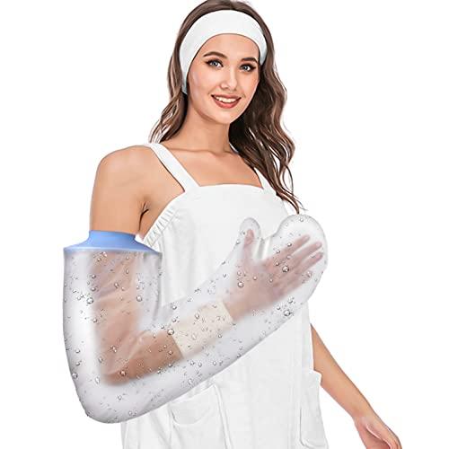 - Size Fits Most Adults: The cast protector for shower arm adults is easy to put on and take off, and won't touch the wounded part. Item size: 16.5*25"(44cm*63cm). Fits adults' arm circumference from 10.6" to 21.3" (27cm to 54cm).