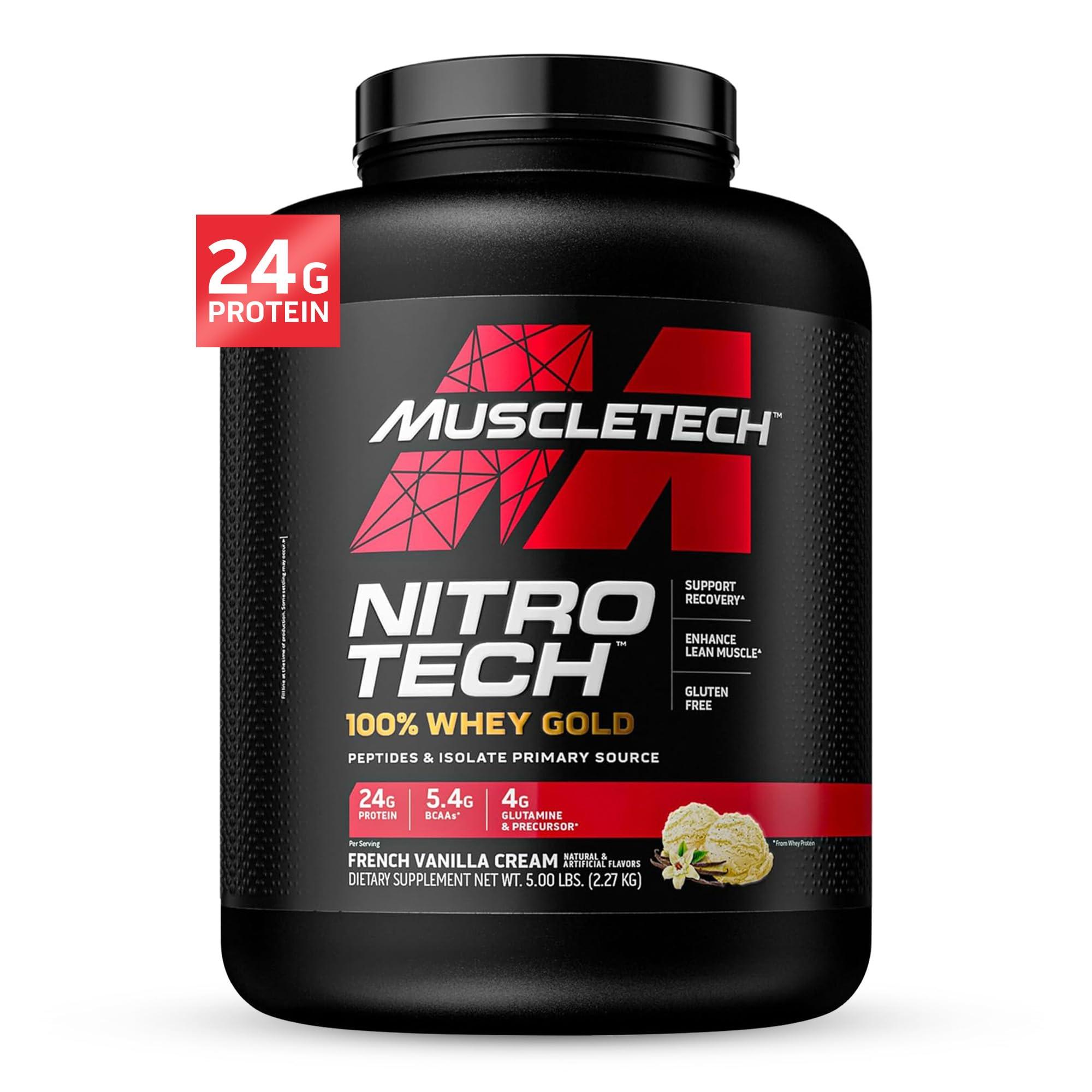 - FAST RECOVERY MuscleTech Nitro-Tech Whey Gold has 24g of protein, 4g of glutamine & precursor and 5.5g of BCAA for better muscle protein synthesis and recovery