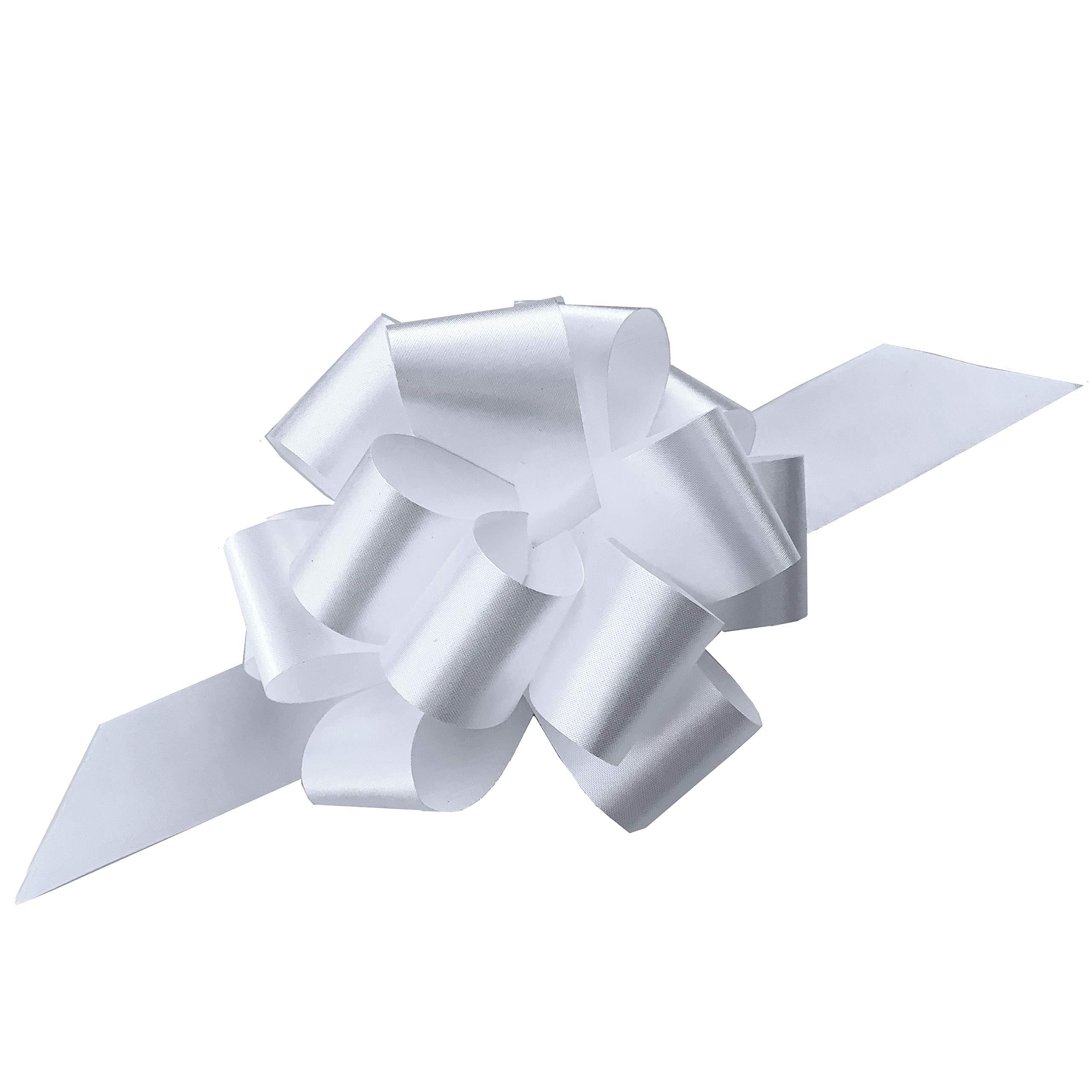 This set contains ten 5" White pull bows. Just pull the 2 attached strings together and each bow will automatically form in seconds! It's so quick and easy that you'll have fun doing it. Short and easy to follow instructions included along with a link to an online instructional video. These beautiful, high quality pull bows are great for decorating wedding gifts, tables, chairs, aisles, wine bottles, birthday gifts, Christmas trees, baby and bridal showers, and much more.