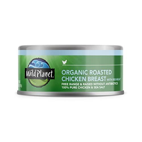 Wild Planet Organic Roasted Chicken Breast With Rib Meat, Skinless and Boneless, Sea Salt, Free Range, Non-GMO, Gluten Free, Keto and Paleo, 5 Ounce Single Unit/Can