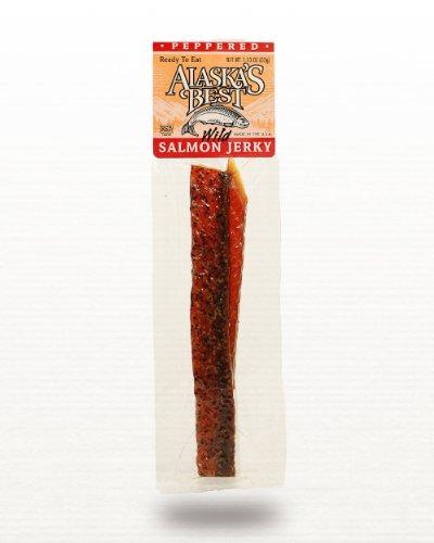 Our best selling grab and go, perfect for a healthy, easy and delicious snack it's loaded with Omega-3 fatty acids and packed with great taste! Alaska's Best smoked salmon jerky from Trapper's Creek is made from all-natural, wild salmon harvested from icy-fresh Alaska waters. Each salmon is hand filleted, carefully seasoned and slow smoked over cherry and alder wood for over 24 hours. Perfect for a healthy, easy and delicious snack, it's loaded with Omega-3 fatty acids and packed with great taste! There are 12 packages of 1 oz sticks per order. Please order Original, Peppered, or Teriyaki.