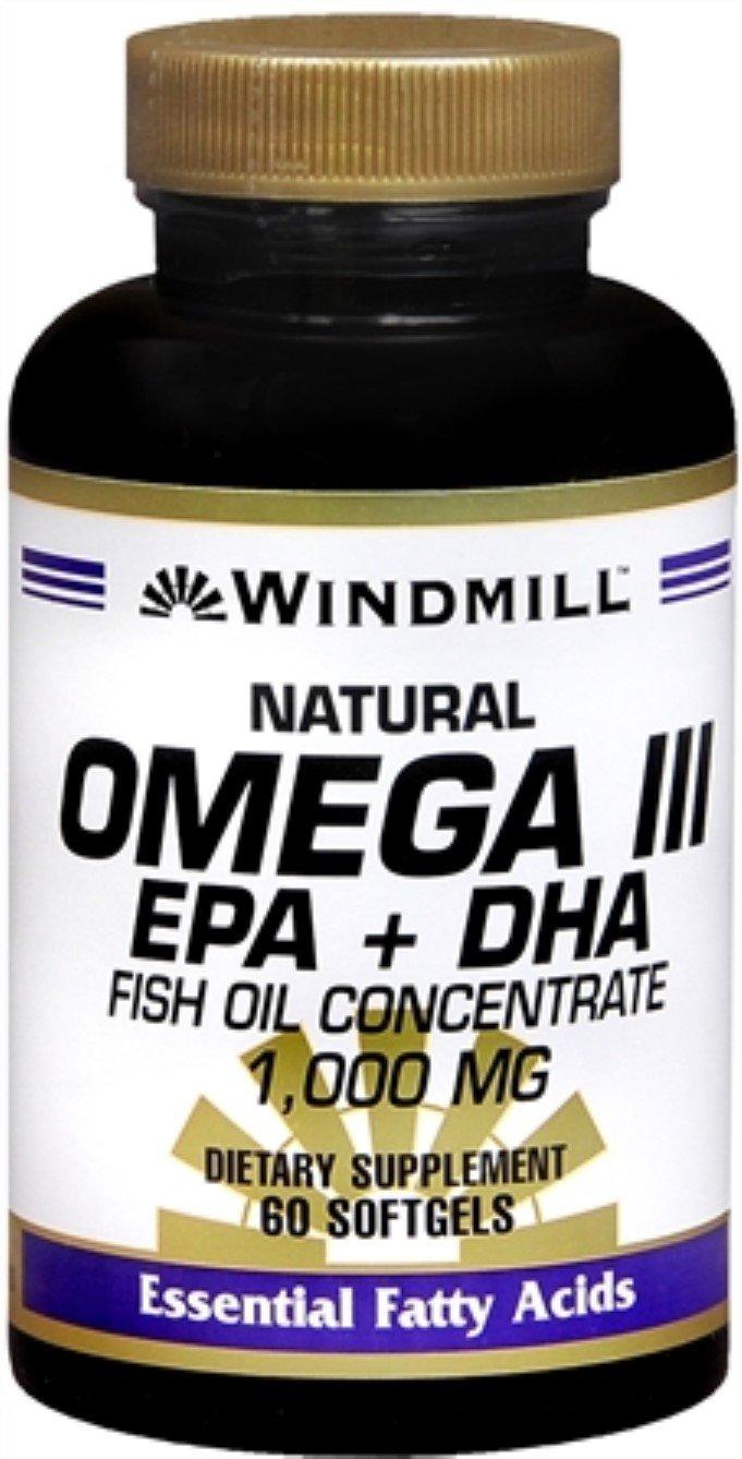Windmill Omega III EPA + DHA 1,000 mg Softgels 60 Soft Gels (Pack of 3)