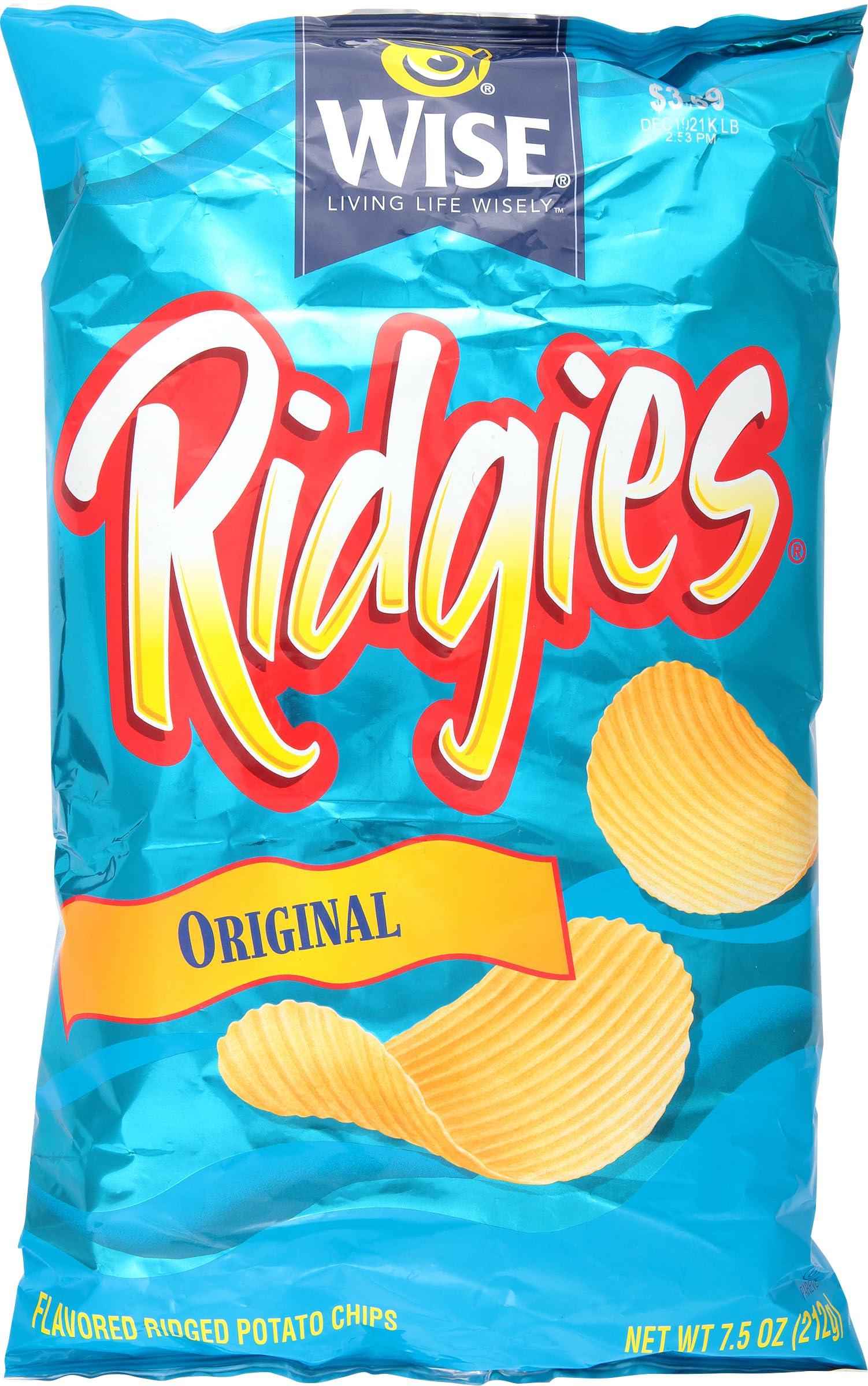 Flavored ridged potato chips. Gluten free. Wise Snacks Facts: No artificial preservatives. Living life wisely. Open a bag of Wise Ridgies and let the party begin! These golden, ridged chips are extra crunchy and perfect for your favorite dip. No dip? They're also great right out of the bag. Dip or no dip. Ridgies rock! Open up and share a bag. Whatever you're doing everyone will have more fun when you bring along a bag of Wise. The Wise Guarantee: We pride ourselves on great tasting, quality snacks. If you're not completely satisfied, contact us for a replacement coupon. Kindly include the product name, bag weight, freshness date and code found on the front of the package. Wise Consumer Affairs Dept. 228 Rasely Street Berwick, PA 18603-4533 USA. wisesnacks.com. Scan for more information. Instagram: (at)wisesnacks. Facebook: (at)wisefans. Twitter: (at)wisefoods.