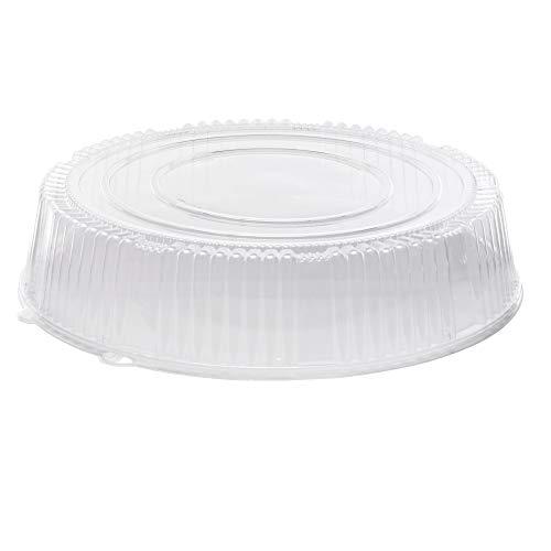 - 25-Count clear plastic dome lids for round trays
