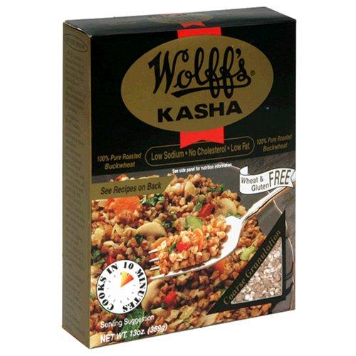 100% pure roasted buckwheat. Low sodium; No cholesterol; Low fat. Wheat & gluten free. Cooks in 10 minutes. Wolff's kasha is roasted kernels of buckwheat, which have a distinctive nutlike flavor. Wolff's kasha is a pleasant mealtime alternative to rice or potatoes. Wolf's Kasha is extremely versatile and can be serve as an entree, side dish, stuffing, in soups and salads, appetizers, desserts and as a delicious breakfast cereal.