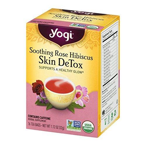 Skin DeTox Tea by Yogi Teas 16 Bag Purify the Skin with Skin DeTox Tea Our skin reflects our diet and lifestyle choices its the mirror to internal health. Its just as essential to cleanse from the inside by reducing internal impurities you can have clearer glowing skin. Yogi Skin DeTox was formulated to support a healthy skin care regimen by shedding impurities. Fragrant rose petal and hibiscus used in Ayurveda to cool and soothe the skin entice the senses with a fresh floral scent. Traditional liver-cleansers burdock and yellow dock combined with ancient blood cleansing red clover help purify the skin and organic green tea rejuvenates with an antioxidant boost. Discover beauty from within in a deliciously cleansing brew of Skin DeTox These statements have not been evaluated by the FDA. This product is not intended to diagnose treat cure or prevent any disease.