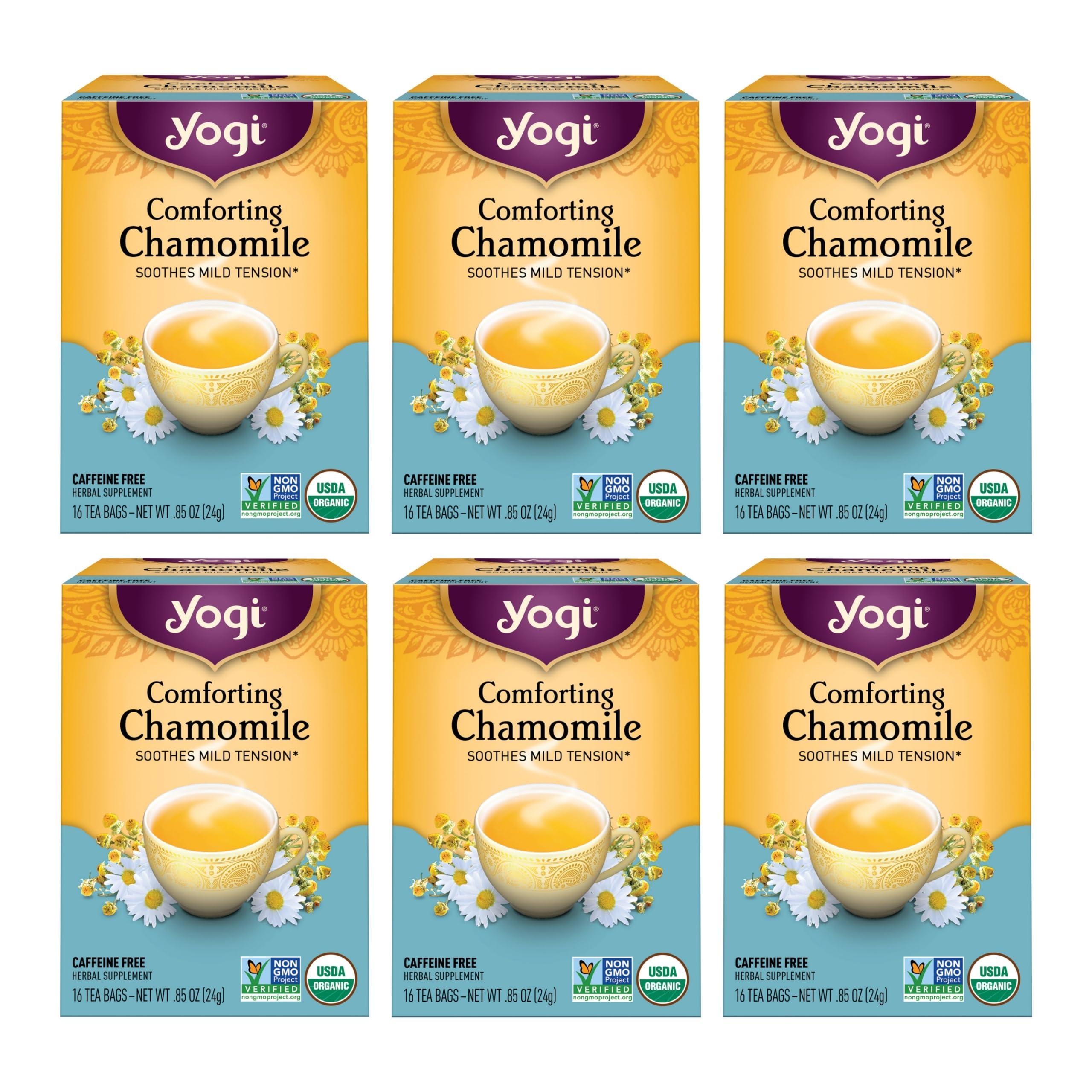 - Organic Chamomile Tea Bags: Let your stresses drift away as you sip a cup of Yogi Comforting Chamomile tea; it's caffeine-free, so you can enjoy a cup day or night