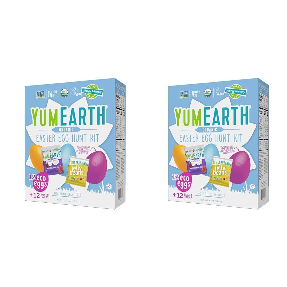 YumEarth Easter Egg Hunt Kit has everything you need for an fun allergy-friendly egg hunt! Kit comes with 12 ego friendly plastic eggs, and 12 YumEarth Easter snack packs - variery of yummy gummy fruits and jelly bean snack packs - that fit perfectly inside each egg. YumEarth is proud to make delicious allergy freindly treats free from the top 9 allergens as well as artifical dyes and hugh fructose corn syurp.