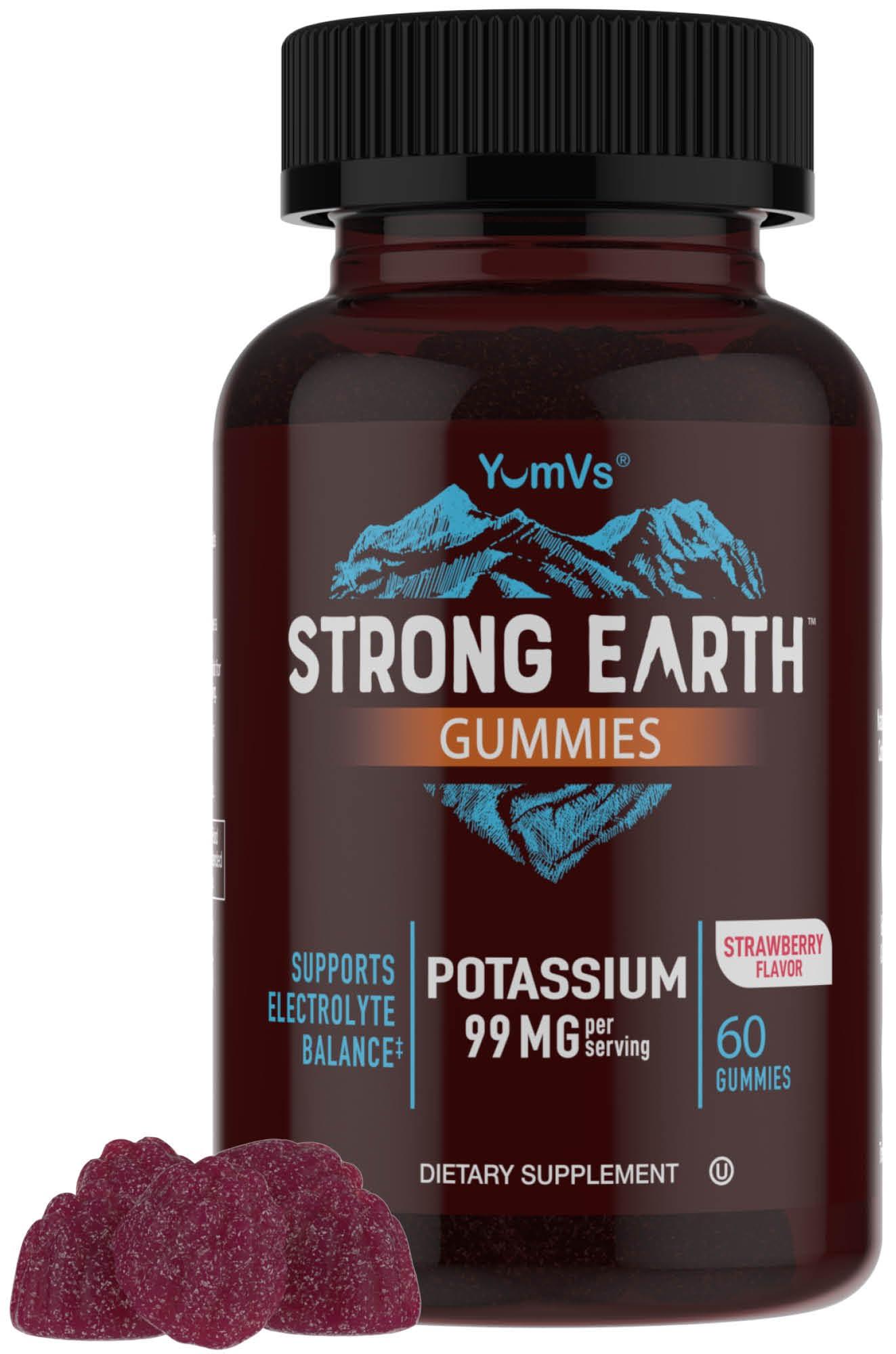 YUM-V\'S YumVs Potassium Supplement Gummies - Strawberry Flavor - 99 mg (as Potassium Citrate) per Serving - Supports Electrolyte Balance - Vegetarian Kosher Halal Gluten Free Pure Potassium Gummies (60 Count)