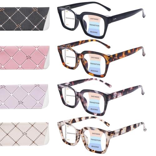- Value PackOur eyewear set includes 4 pairs of progressive reading glasses, 4 PU leather cases, and 1 microfiber cleaning cloth. You can place a pair of anti-blue light readers anywhere you need; the colorful glasses not only allow you to match a variety of outfits but also make a wonderful and practical gift for friends and family.